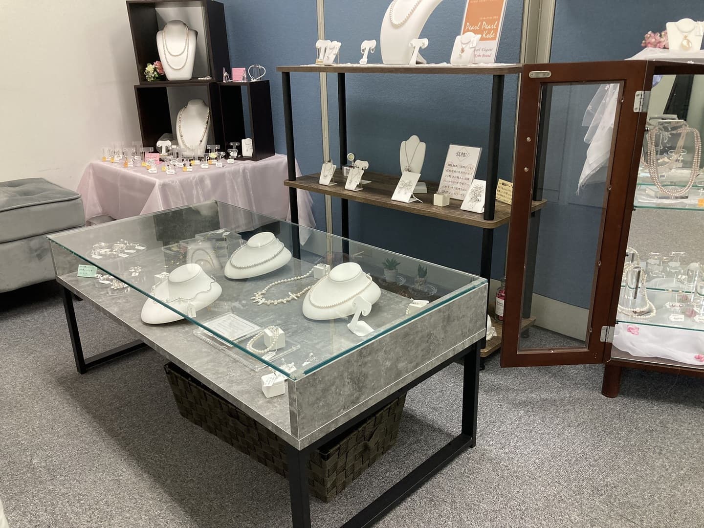 We sell pearl necklace, earrings, pandant, ring, brooch, etc. We repair necklace and Jewelry. You can find the good Japanese souvenirs.