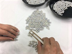 伊勢、四国、九州などの真珠養殖産地から仕入れ、ネックレス、バラ珠を取り扱っています。形はラウンドからバロック、双子、色はホワイト、ピンク、グレー、ゴールド、サイズは3~9mm.など取り揃えています。 - 南洋真珠